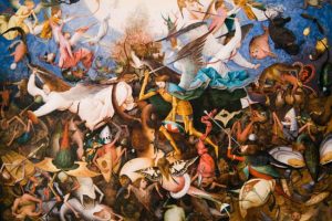 A ilustração é A queda dos anjos reberdes, de Bruegel, o Velho.