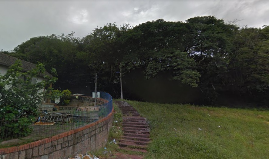 Saio do Alim Pedro em direção à Praça Chopin. Lá adiante, descendo por detrás do Becker, caminha no mesmo sentido uma velhinha quase obesa, negra. Com a mão direita se segura nas grades, na esquerda um grande guarda-chuva preto serve de bengala. Talvez moradora do bairro, mais provavelmente usuária do Postão.