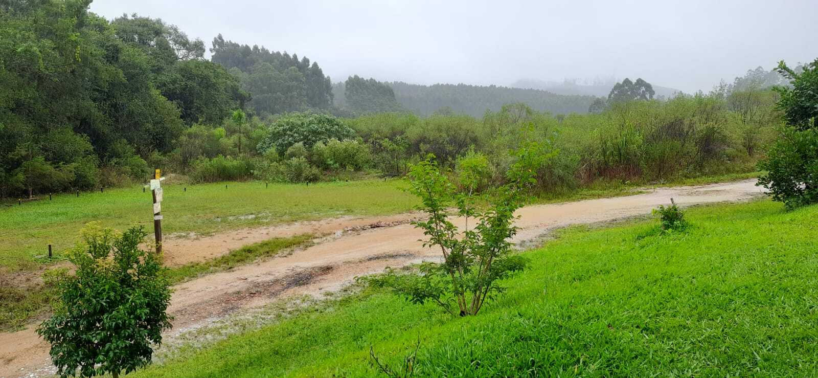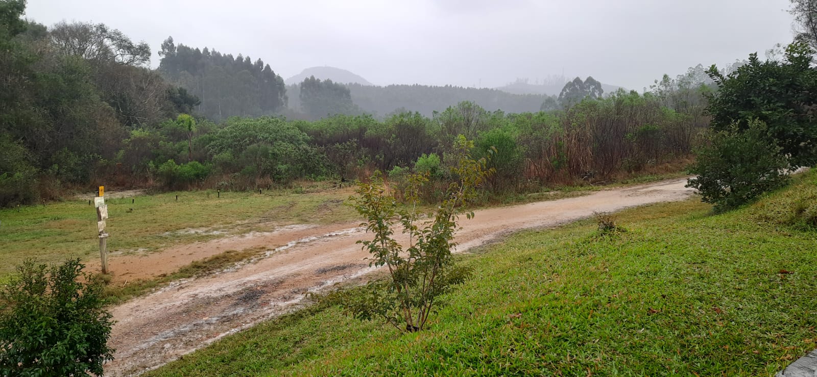 No primeiro plano, o gramado. Nele, bem próxima, quase invisível, a roseira morta, lembrança que permanece. Depois, da esquerda para a direita, pés de guabiju, guabiroba, jabuticaba e araçá amarelo, todos com cinco anos. A jabuticabeira, coitada, está se recuperando: por não ser deste clima, sofreu com as geadas, mas o El Niño lhe deu…